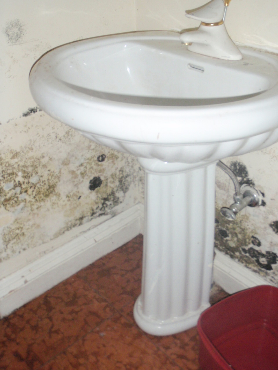 욕실 세면대 부분에도 곰팡이로 물들고 벽면 및 몰딩 가구등에