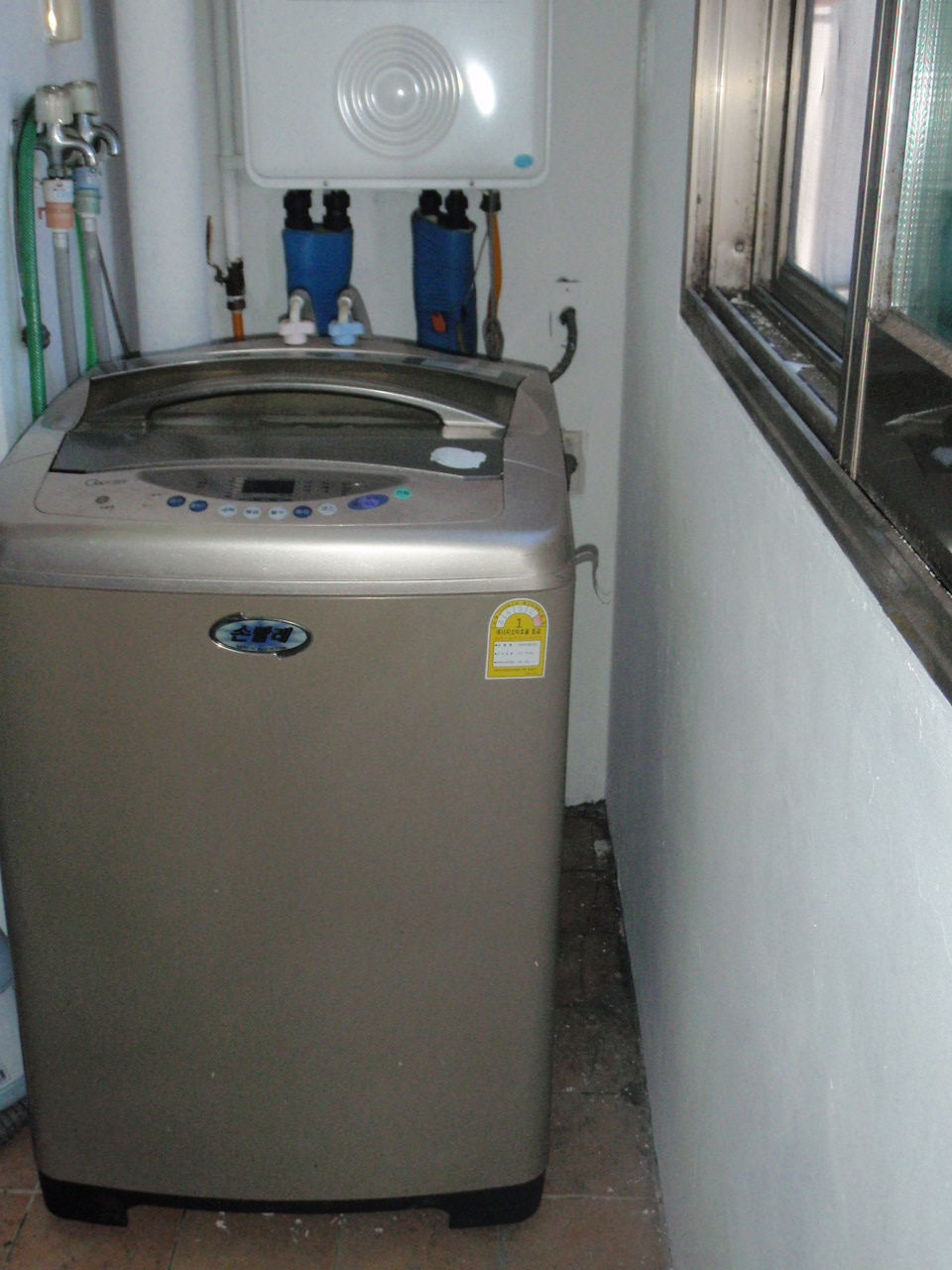 해가 잘 들지 않는 세탁기 놓은 주방 베란다등이 있는데
