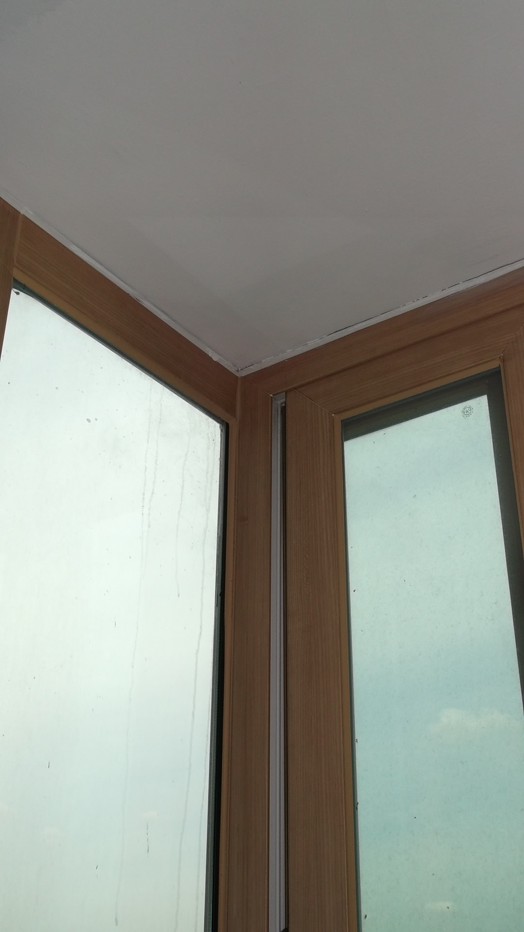 결로? 베란다 벽에 실내외 온도 차이로 이슬점이 맺히고 물방울이 맺히어