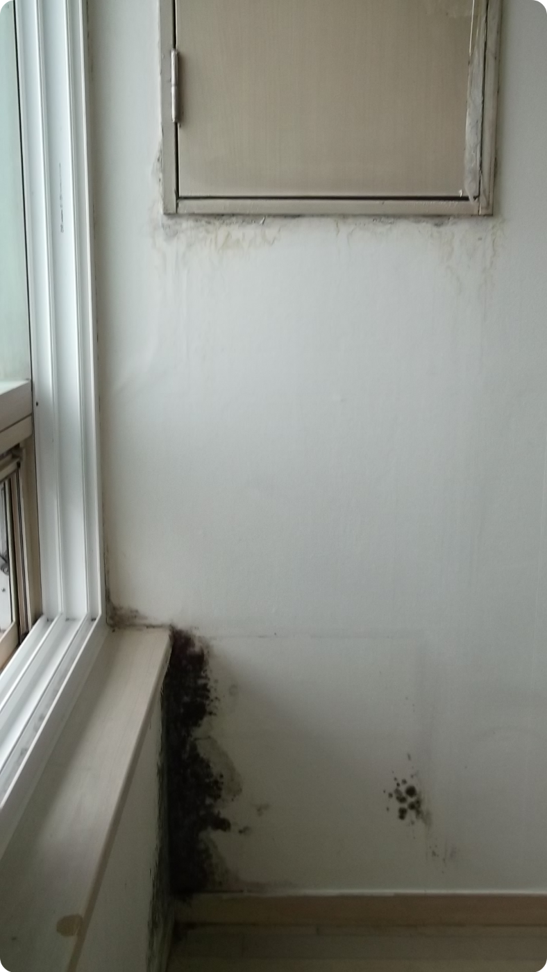 특히 벽지에 곰팡이가 생긴 벽면의 위치를 보시면...