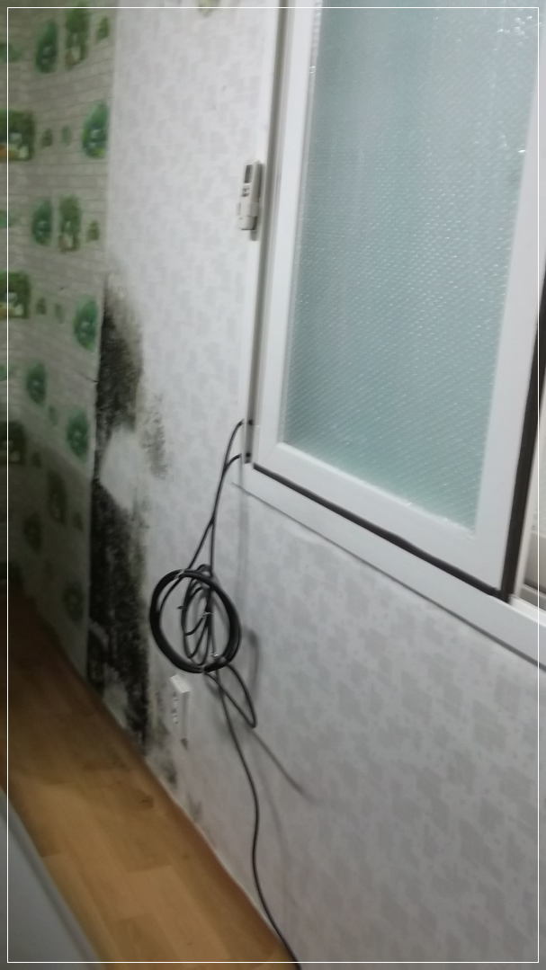 곰팡이는 단열벽지에 가려져 기존에 심하게 보이던 곰팡이는