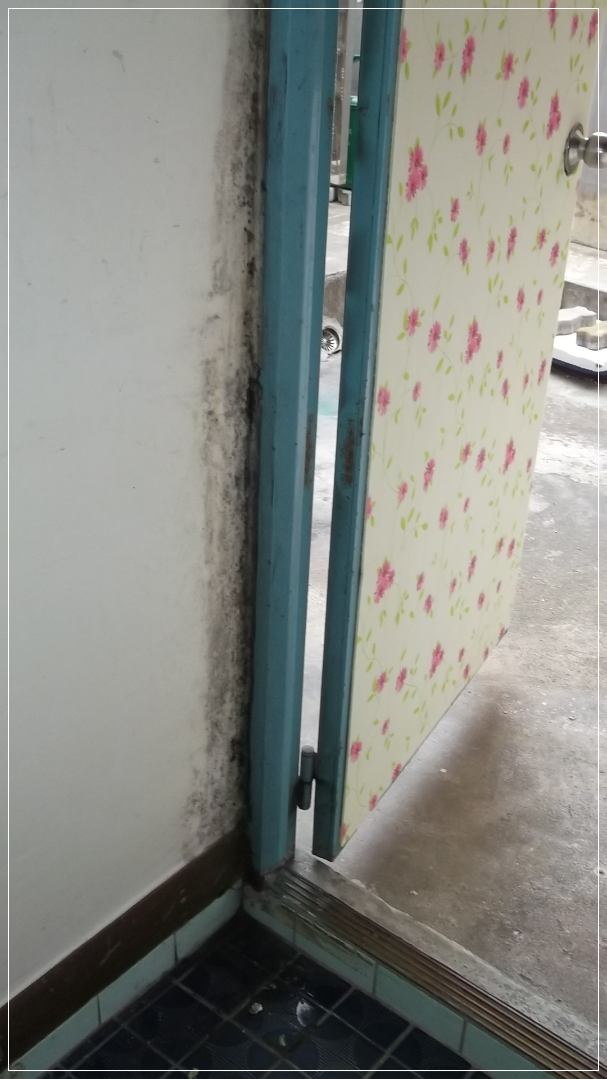 현관 곰팡이가 생기고 나름 직접 곰팡이제거제 약품을 뿌리고 지워도