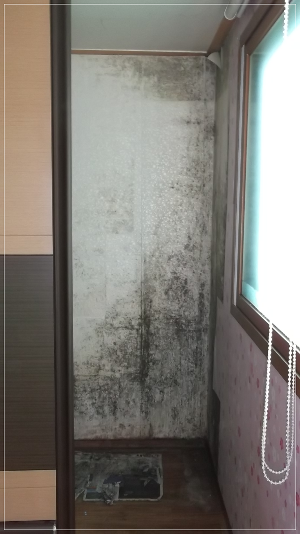 붙박이장 뒤 벽지곰팡이도 생기고 또 거기에 붙박이장 뒷판 가구곰팡이가