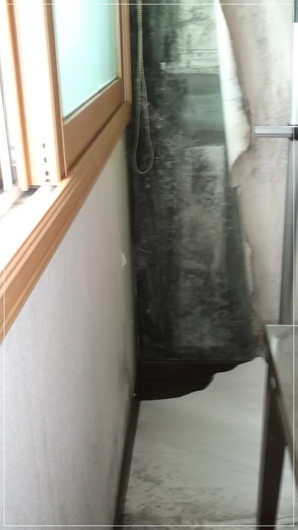 샷시 코킹 문제로 인해 창문 벽 아래 및 옆에 곰팡이가 생기고
